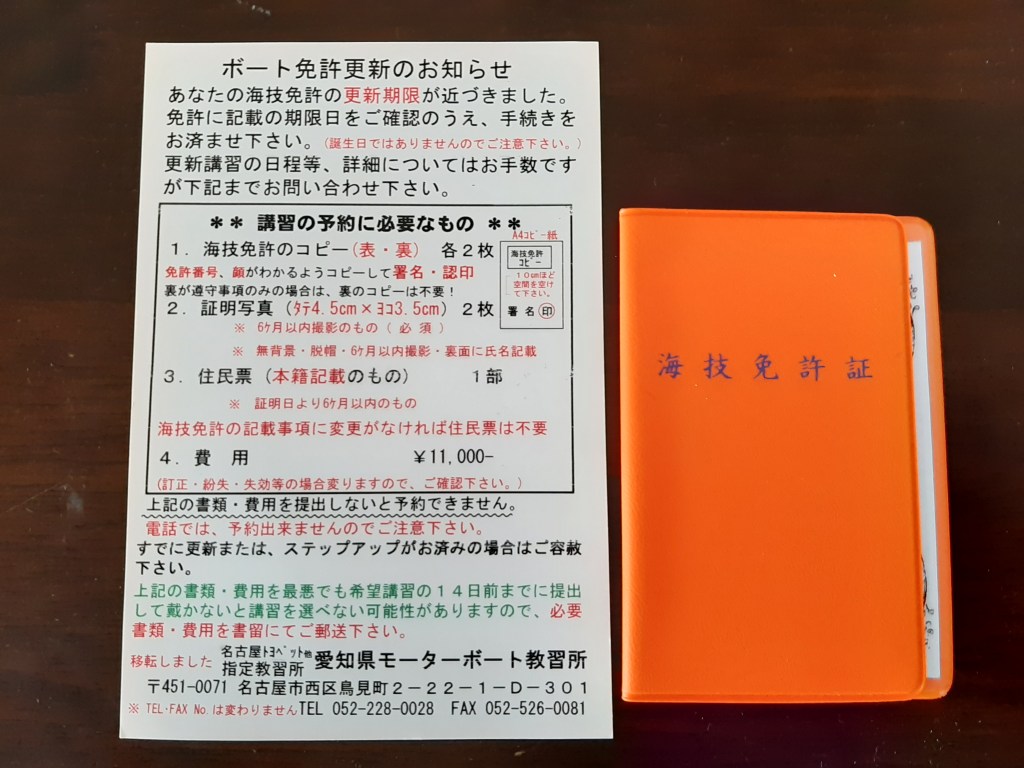 先日、ボート免許更新の案内ハガキが届きました。トラさんは小型船舶2級免許を持っているのでした。