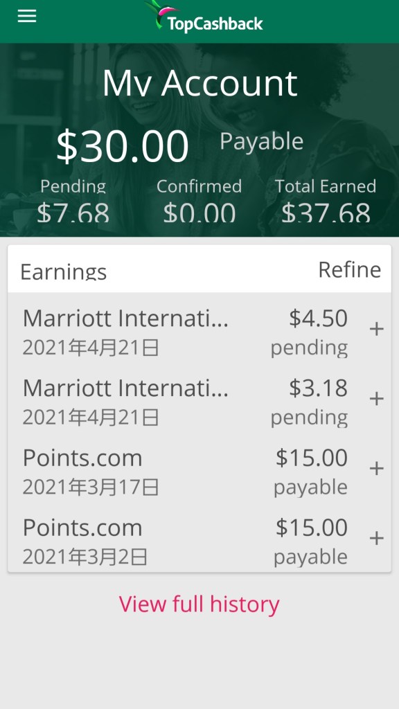 TopCashbackの場合は為替の影響を受けるので、交換レート次第ですが、今の107~108円/$だと日本のポイントサイト経由の方がリーズナブルなようです。