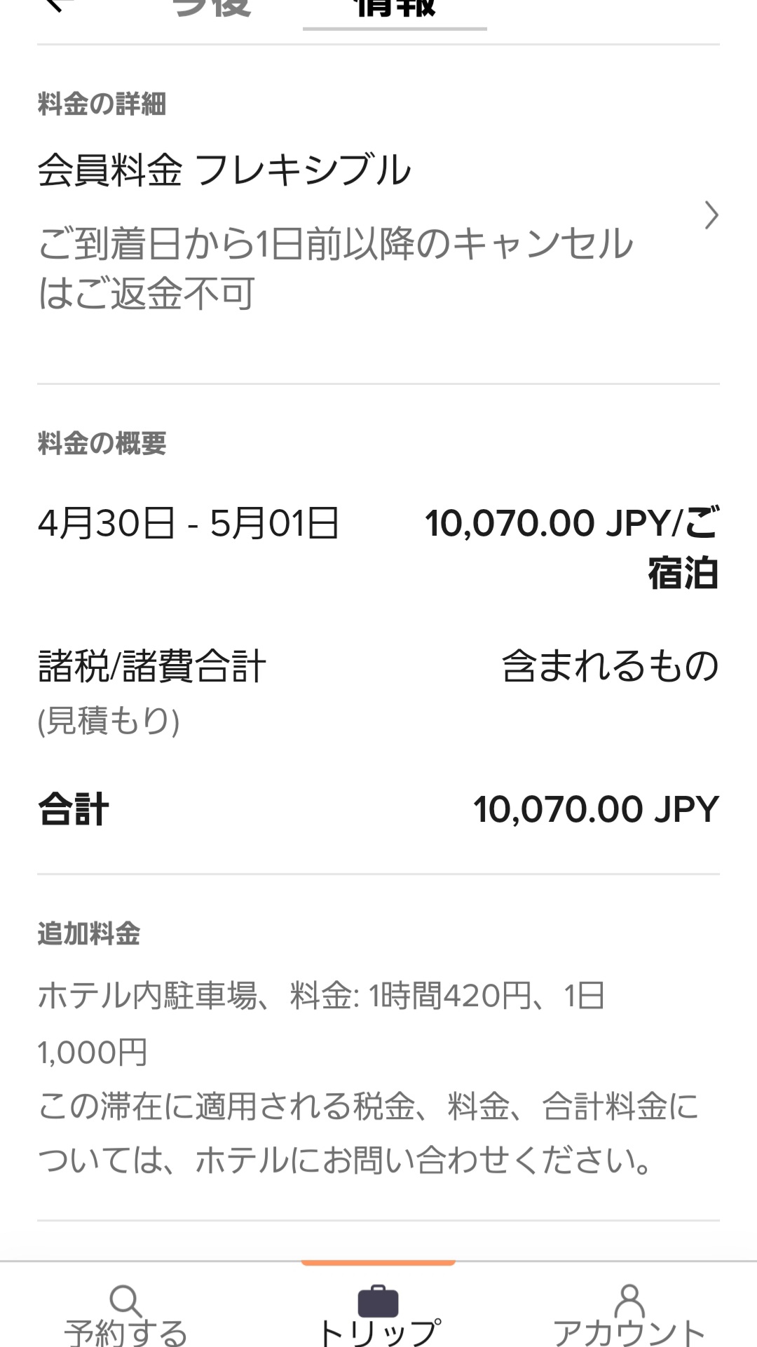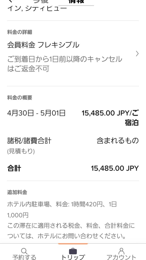 何の気なしに、予約済のHOTELを今から取るといくらだろう?と確認してみました。