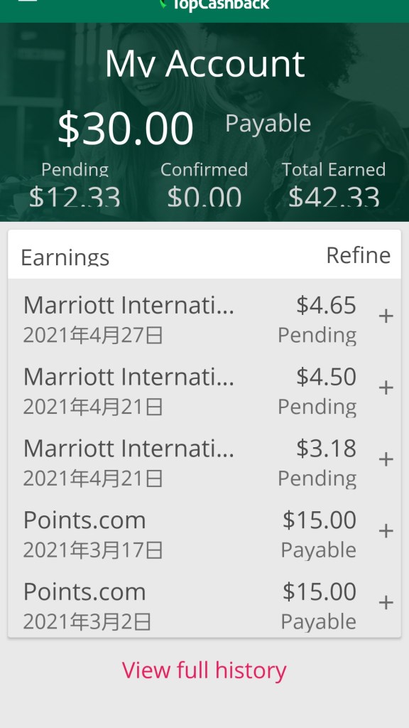 すでにキャッシュバックの$4.65がpending状態になっていました。