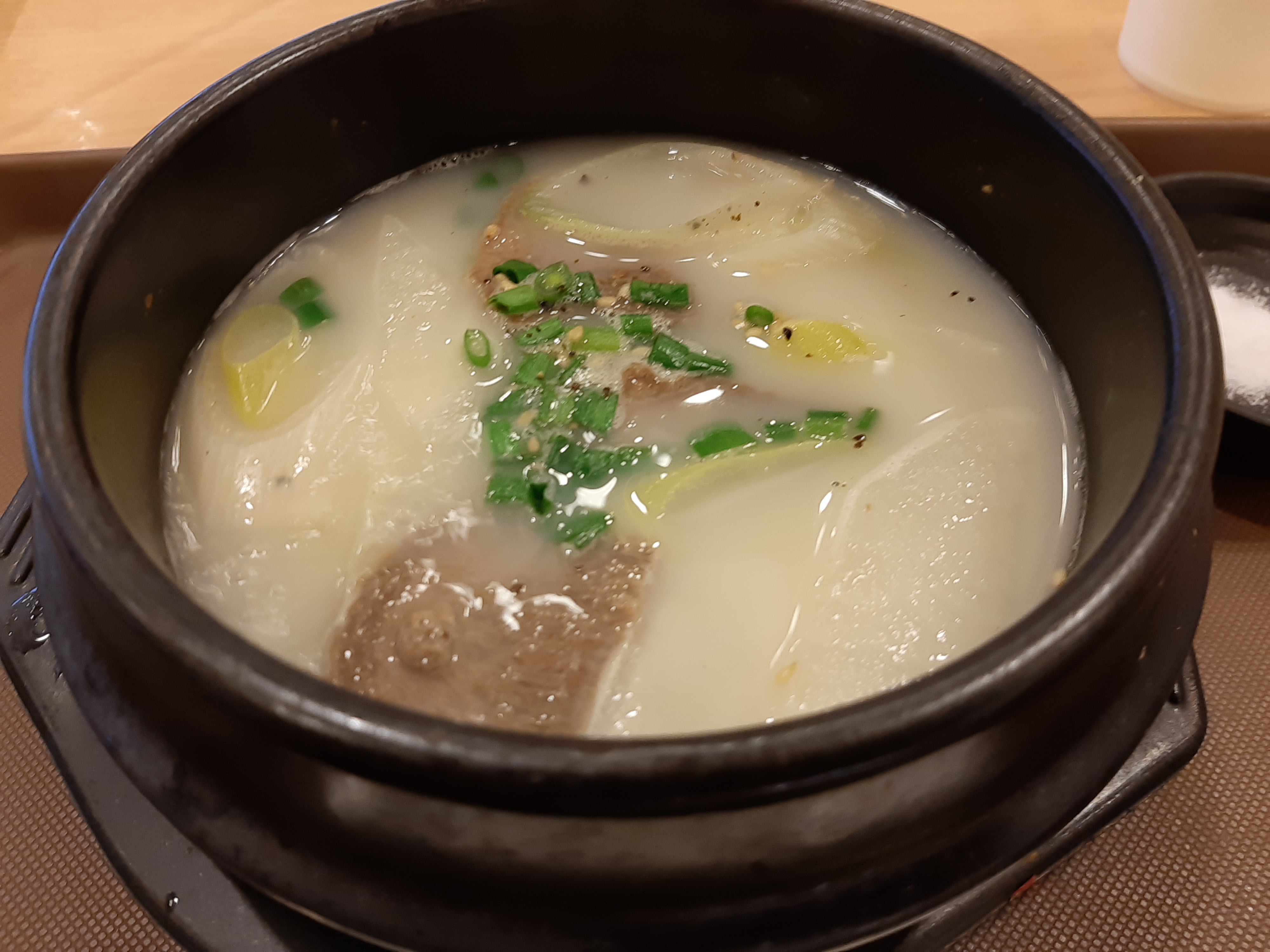 次にお腹がすいていたので、3階のカフェテリアコーナーへ。カウちゃんの好きなソロロンタンがある韓国料理のお店『ユン家の食卓』で注文しました。