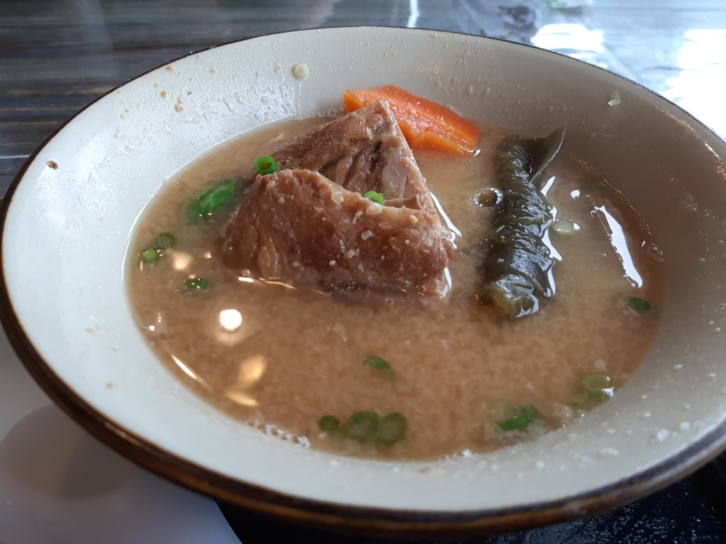 トラさんは「ソーキ汁定食」(990円)、カウちゃんは「アーサそば」(836円)を頂きました。