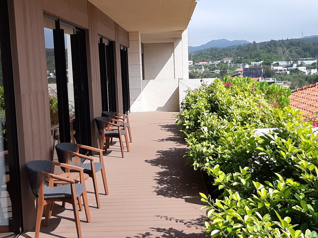 チェックアウトもクラブラウンジで行います。お天気が良いのでテラス席でアフタヌーンティーを楽しみます。