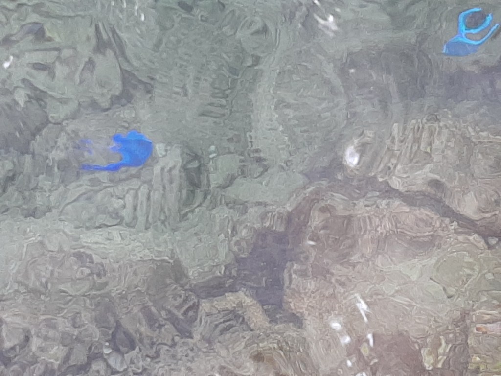 透明の海には鮮やかなブルー色の熱帯魚が泳いでいました。