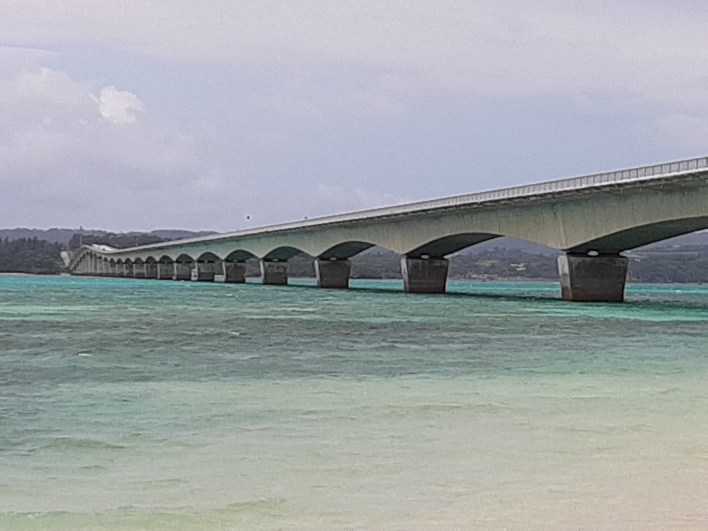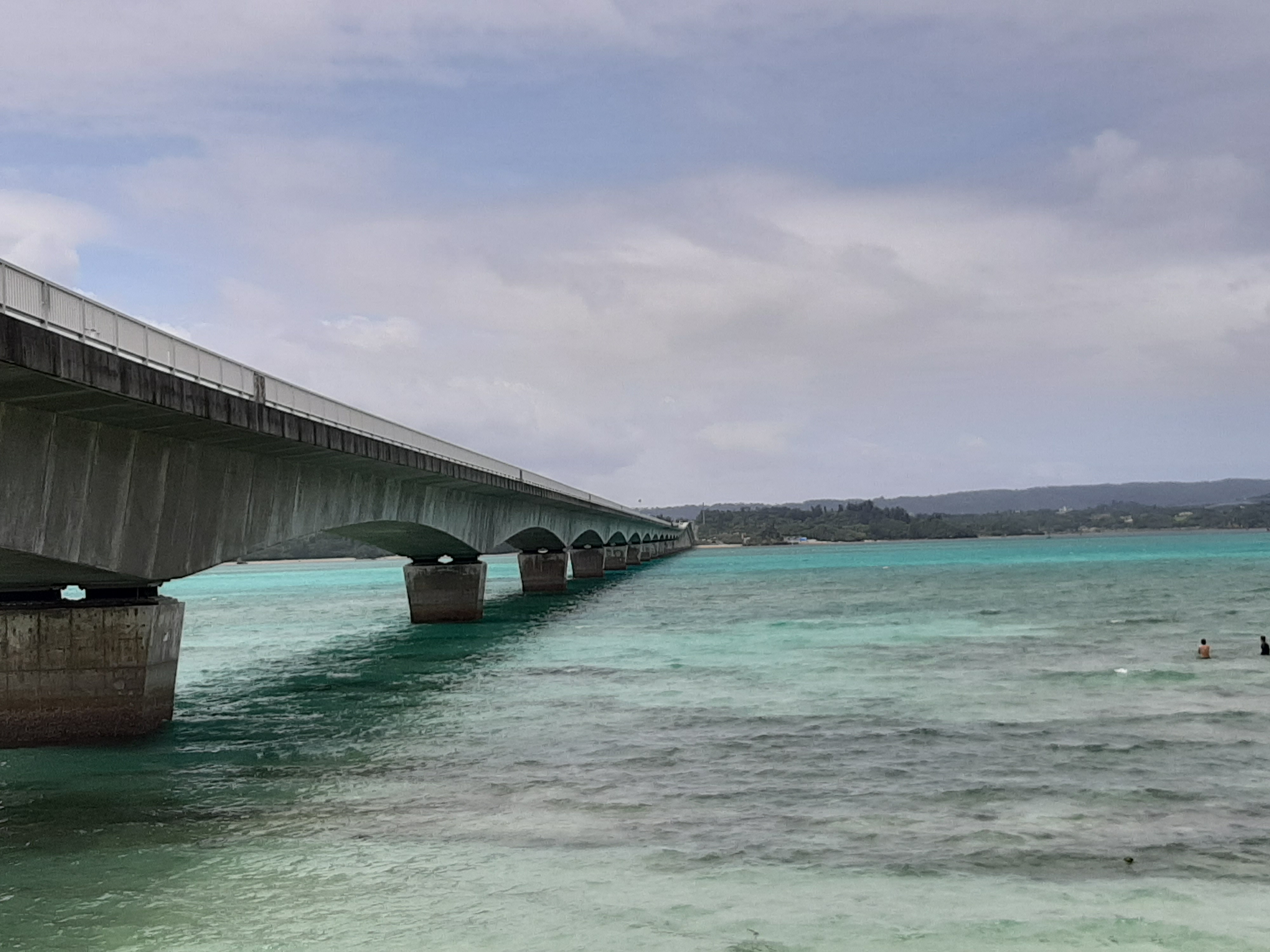 古宇利大橋にさしかかりました。車があまり走っていないので、ゆっくり景色を楽しみながら渡ることができました。