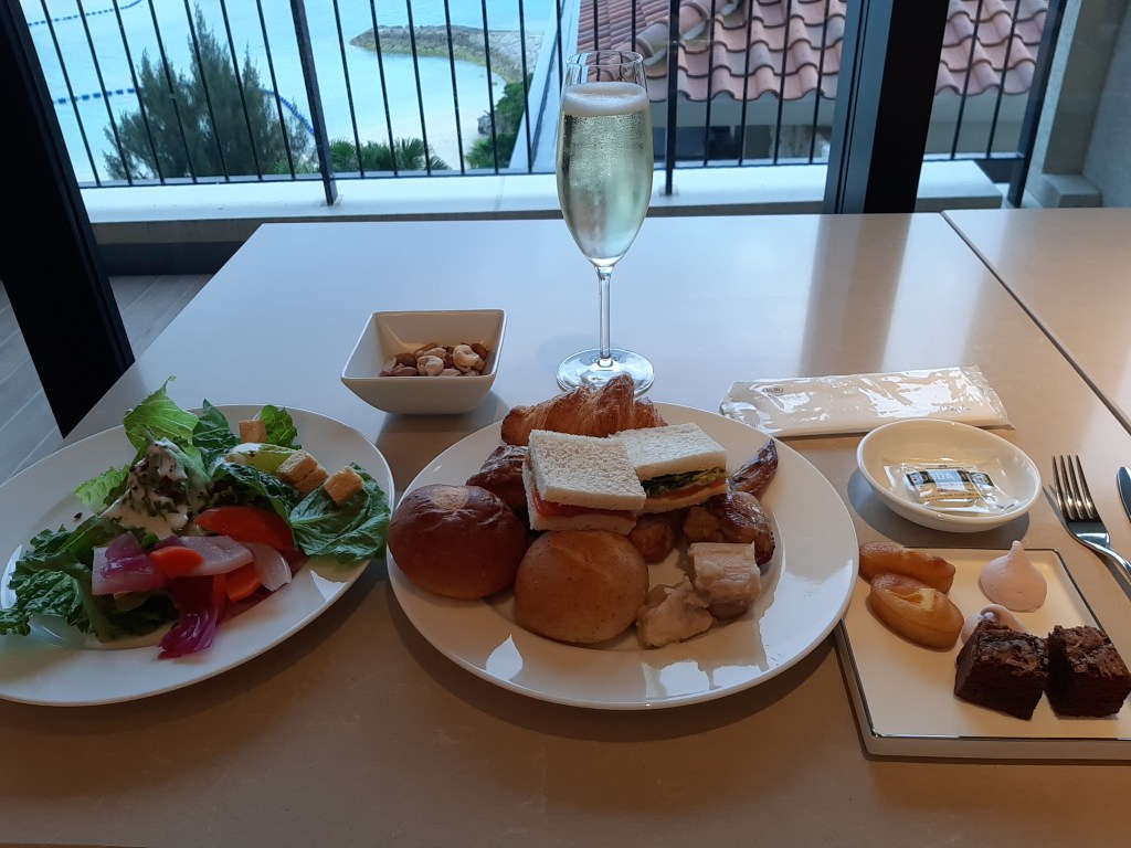 初日の夕食は、クラブラウンジのカクテルタイムに出されたサンドイッチなどで十分お腹がふくれました。