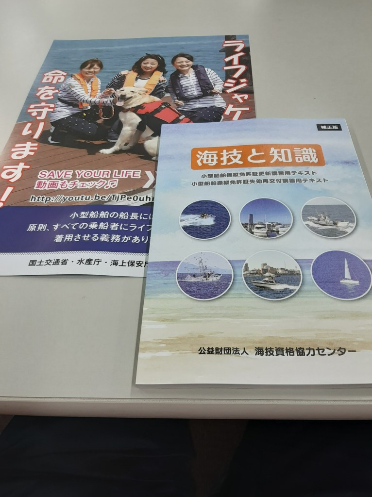 小型船舶操縦免許証更新講習を受けてきました。近所なので自転車で行けました。