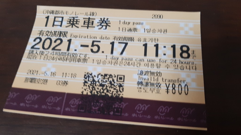 今日は首里城公園と国際通りにも行ってみるつもりなので、ゆいレールの24時間切符(800円)を購入。
