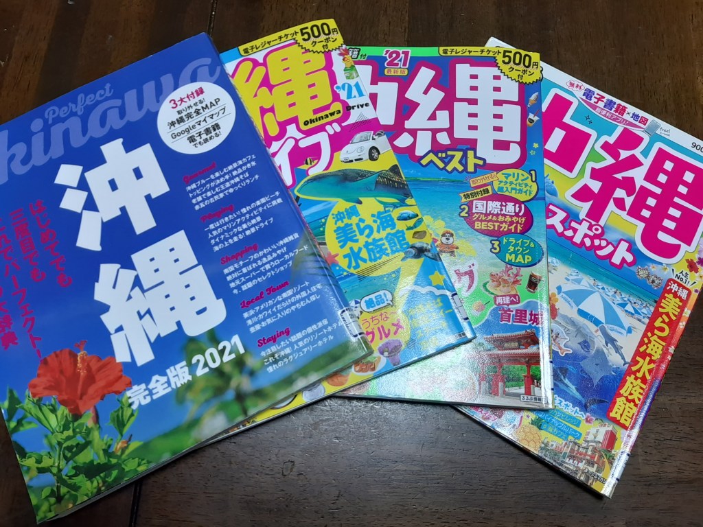 明日と明後日は沖縄へ日帰り旅行をするので、ガイドブックを図書館で借りてきました。