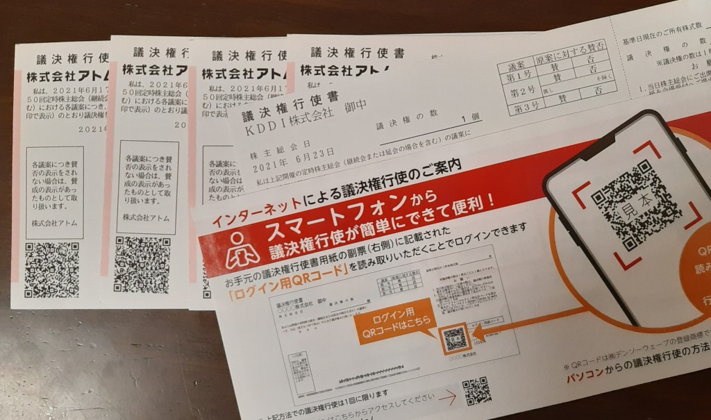 今ではQRコードを読むだけで議決権行使ができるので便利なものです。