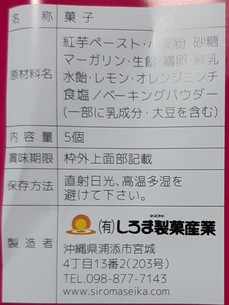 沖縄県外で作っているのか?と箱の裏を見ると、沖縄県浦添市の住所です。