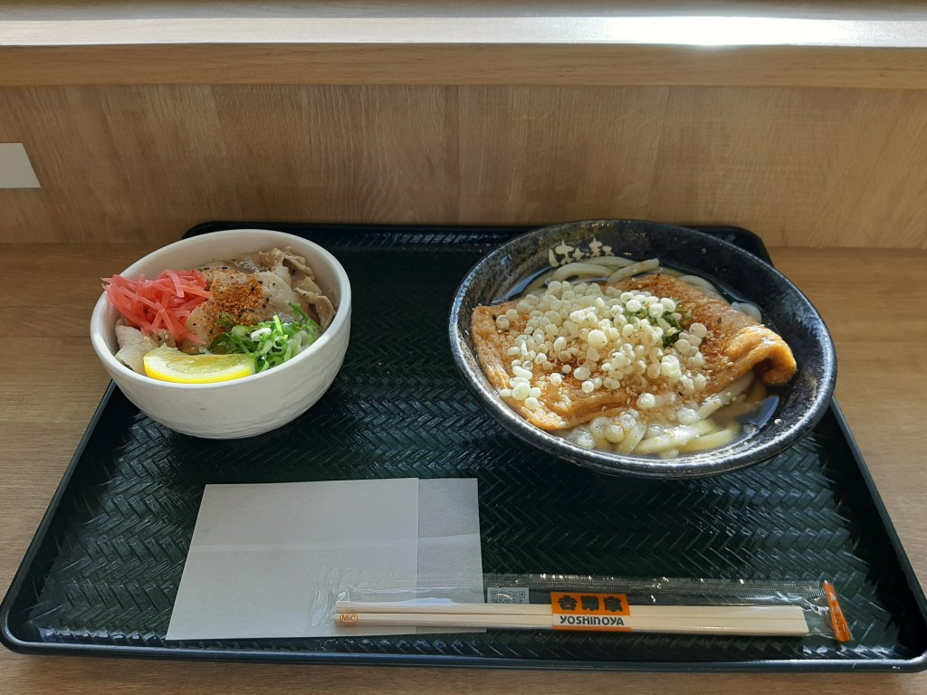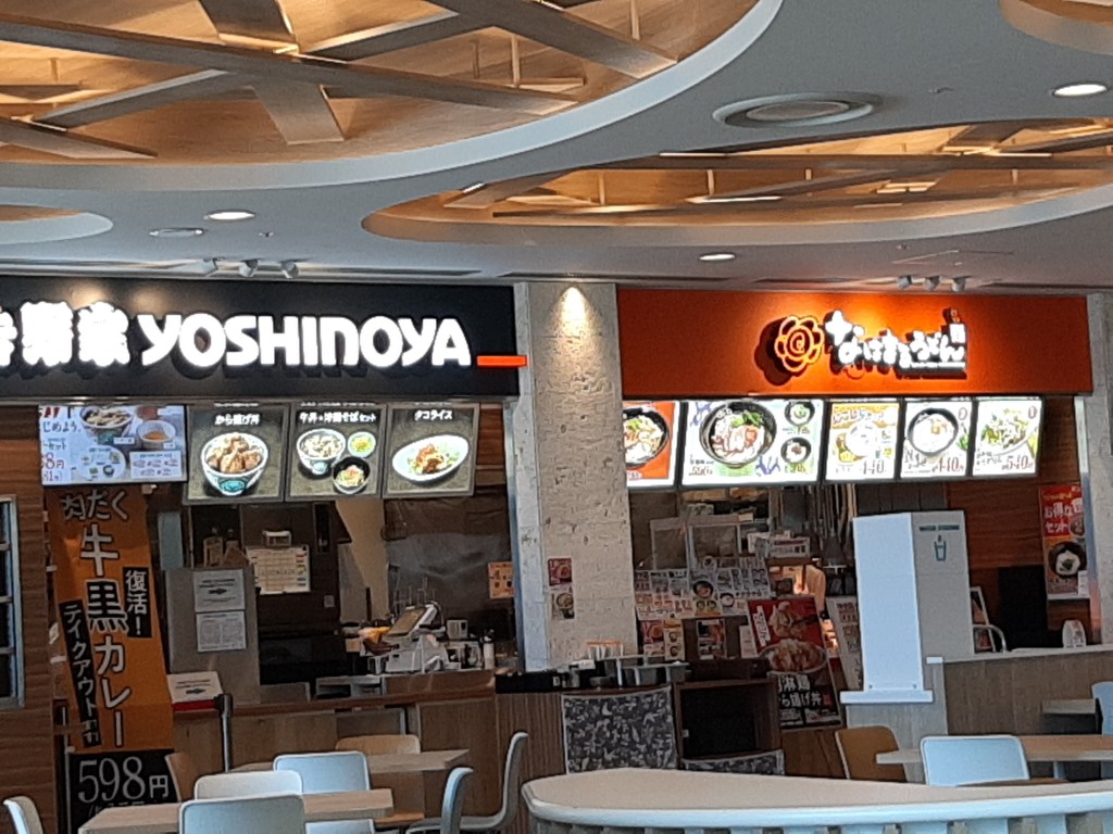 那覇空港に着いてからは少し時間があるので、定番となった吉野家×なはまるうどんで昼夕兼用食。