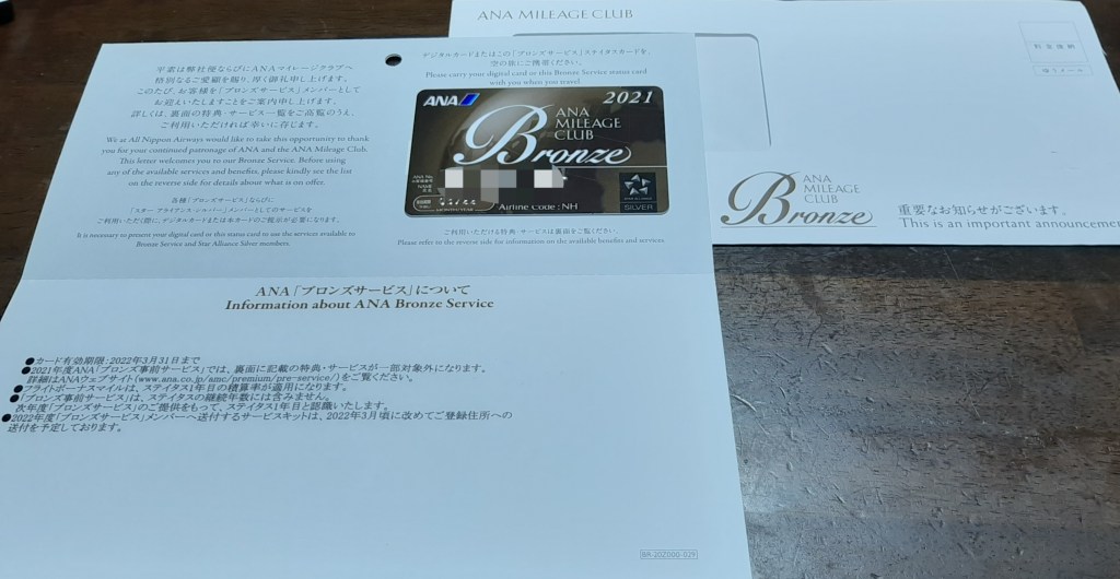 今日、帰宅したらANA MILAGE CLUBより封書が届いていました。