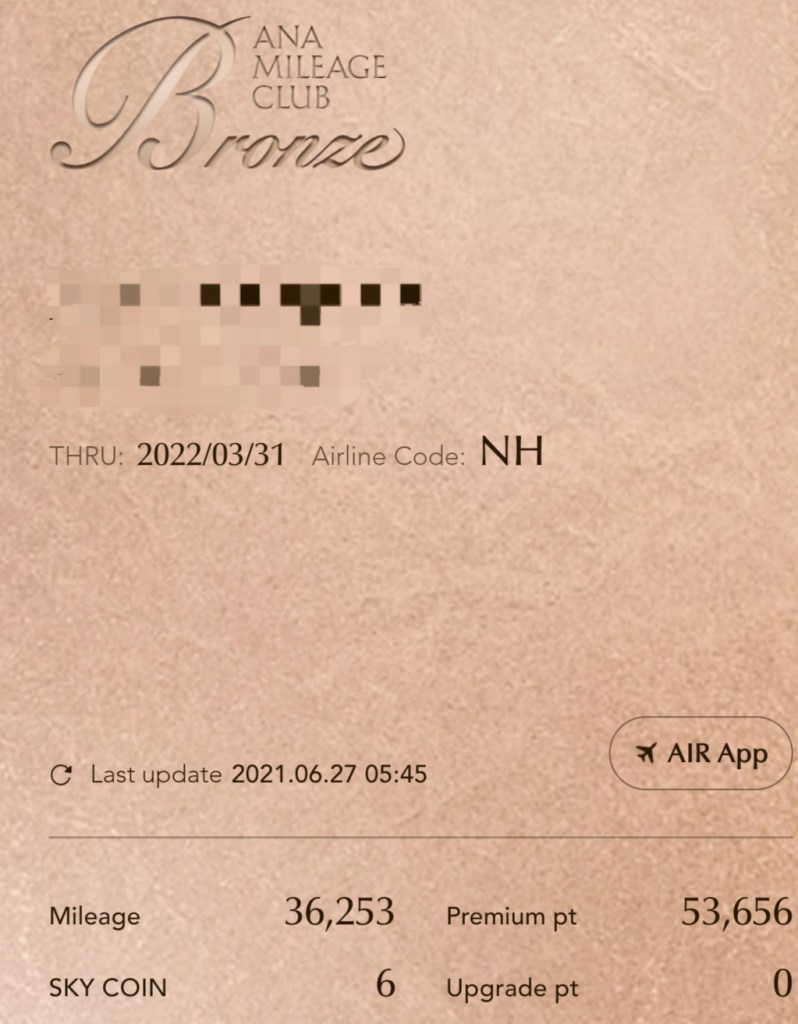 ANAアプリでは53,656 PPと昨日のフライト実績が反映されましたが、ステイタスはまだBronzeのままです。