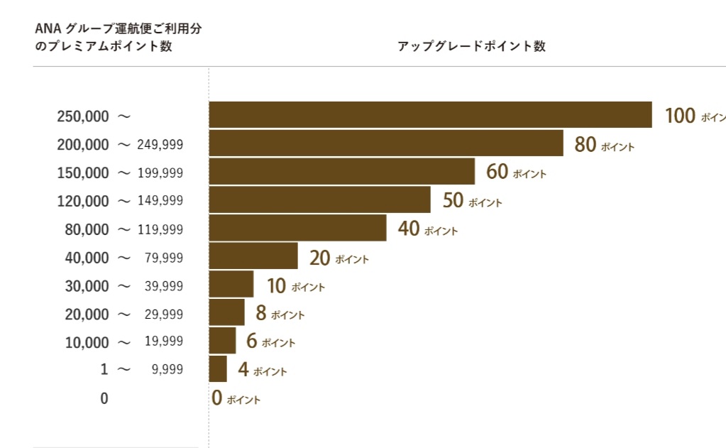 アップグレードポイントは、1月~12月までの獲得PPに応じて翌年4月~翌々年3月までのフライトに使えるようです。