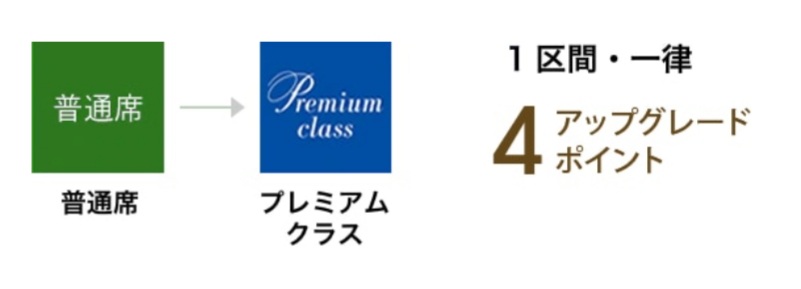 アップグレードに必要なポイント数は、国内線のプレミアムクラスへは4ポイント必要です。