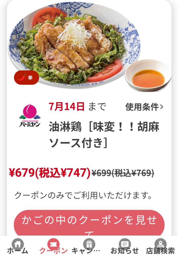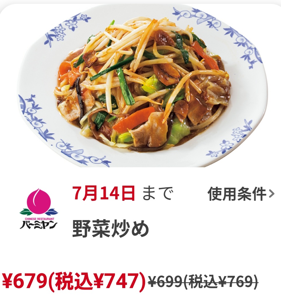 というのも、アプリの方も通信状況が安定するとサクサク動き、クーポンの中にトラさんが注文した油淋鶏とカウちゃんが注文した野菜炒めがあったからです。