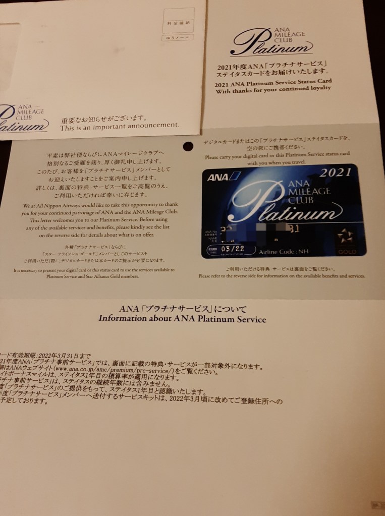 ところで、ANAのプラチナステイタスカードが届きました。しかし、SFCへの入会申込書は入っていません。この申込書が早く欲しいのですが…