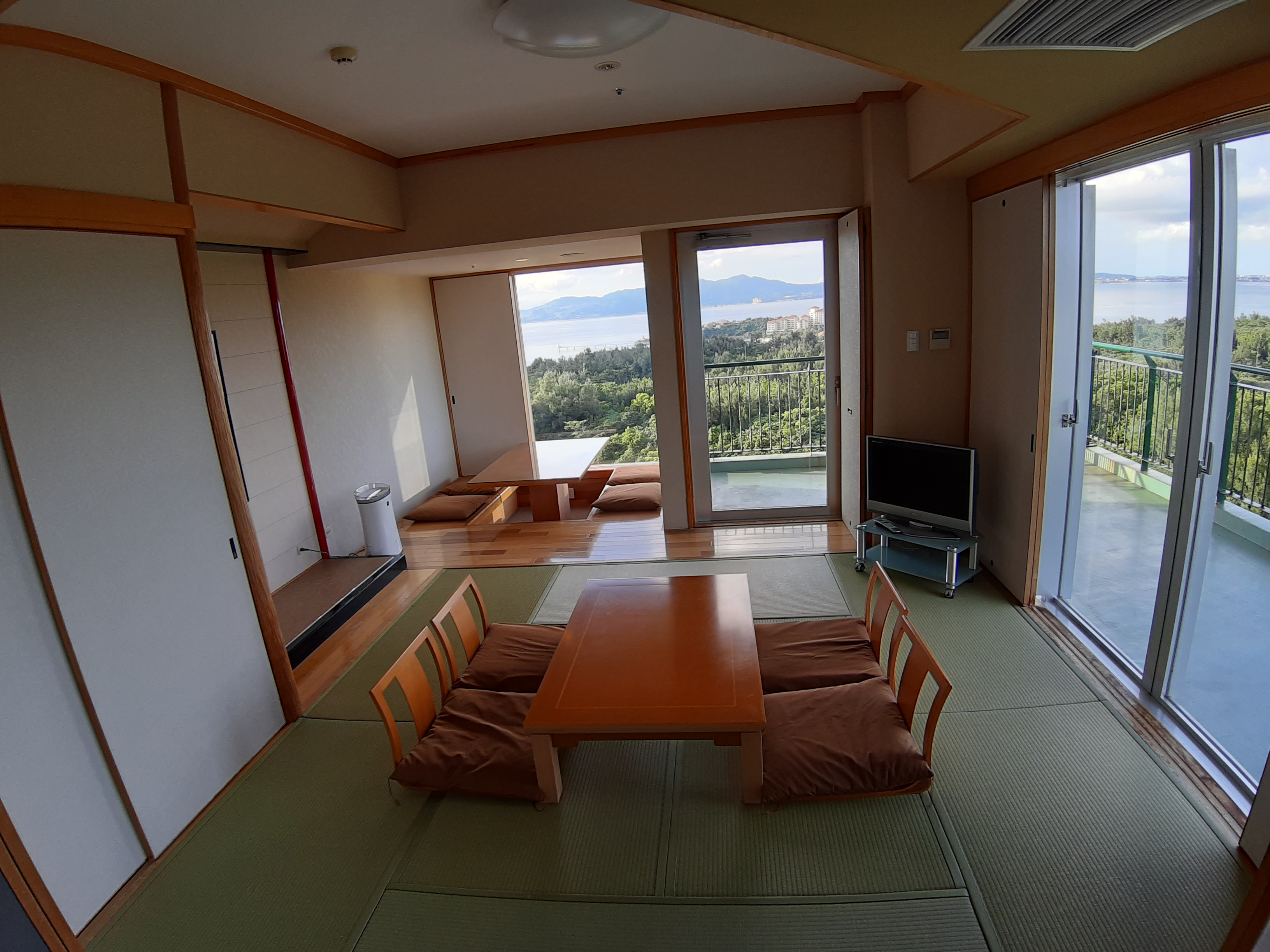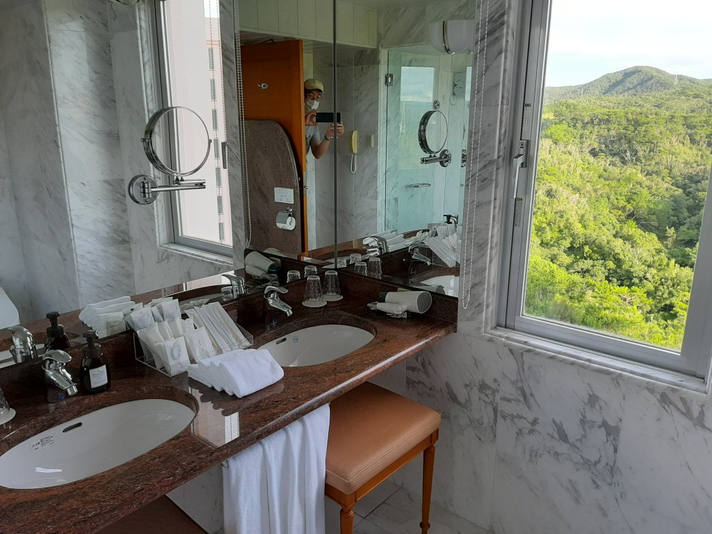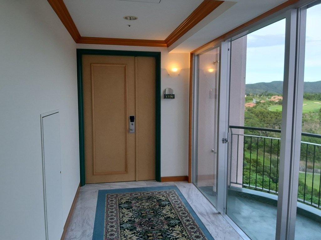 このホテルはファミリー向け主体のため、一番小さい部屋でも44㎡あるようです。トラさん達はコーナールームだったので、64㎡あり、眺望も解放感もバッチリでした。