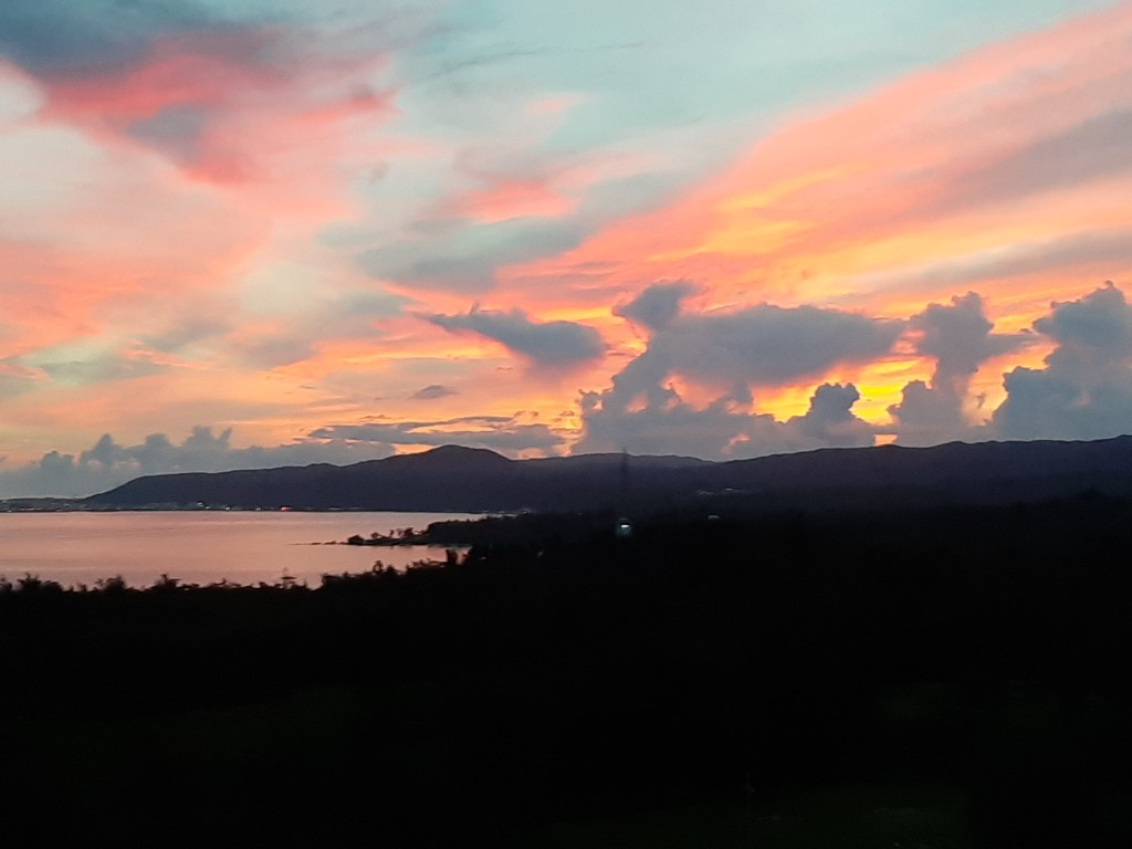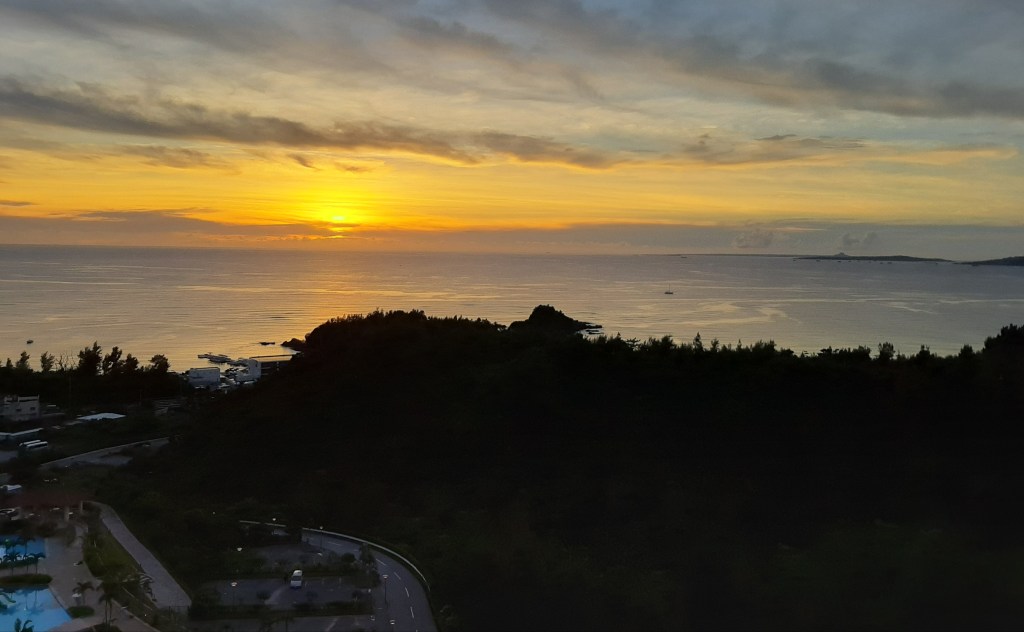 翌朝、サンライズは反対方向だろうと思い込んでいたら、朝焼けが見えます。