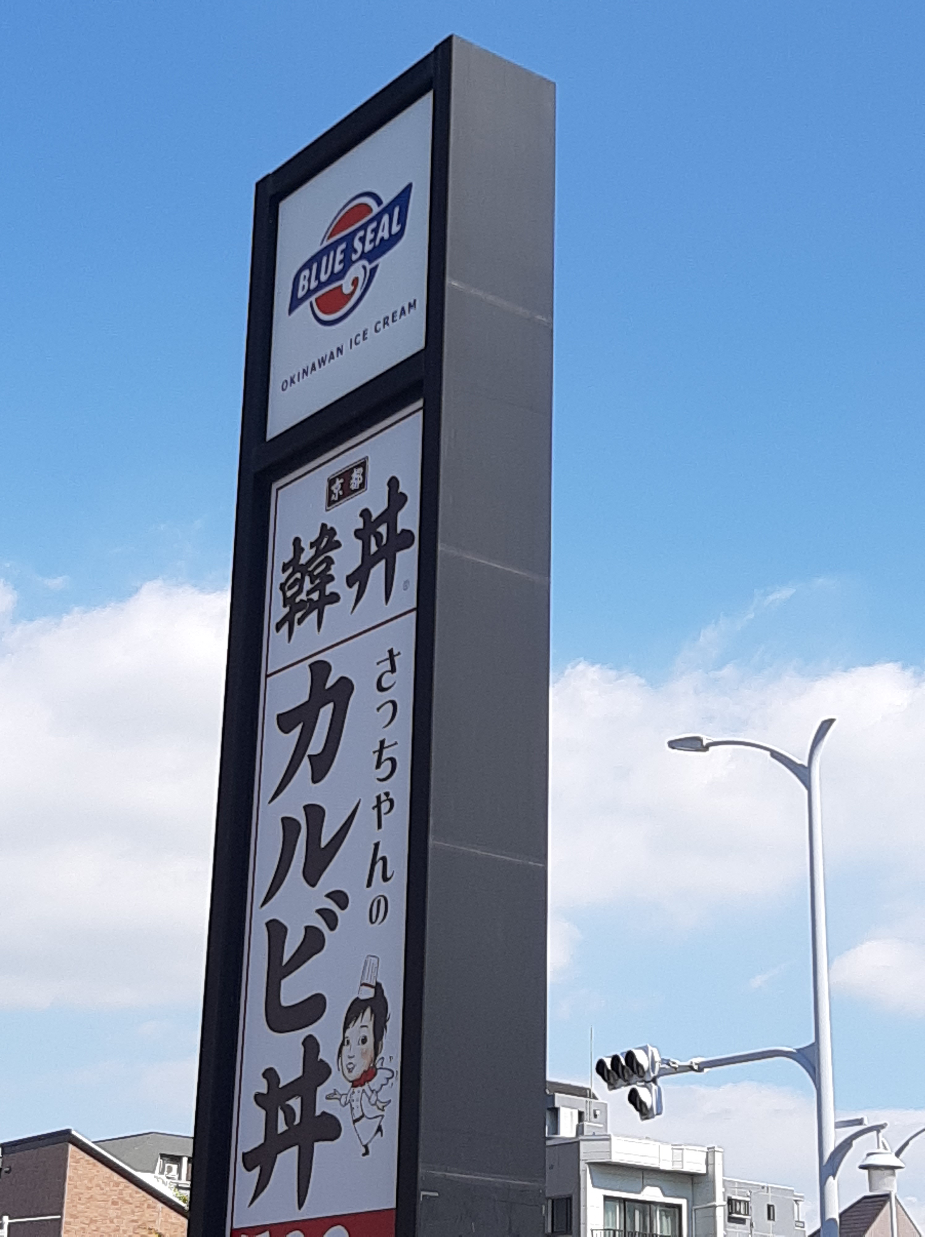 トラさんが今日食べたお店は、名古屋市南区柴田という場所で、以前は「ステーキ宮」があった所です。アトムの株主優待カードが使えたので、何度か利用したことがあります。今はカルビ丼のお店とブルーシールアイスクリームが共存しています。