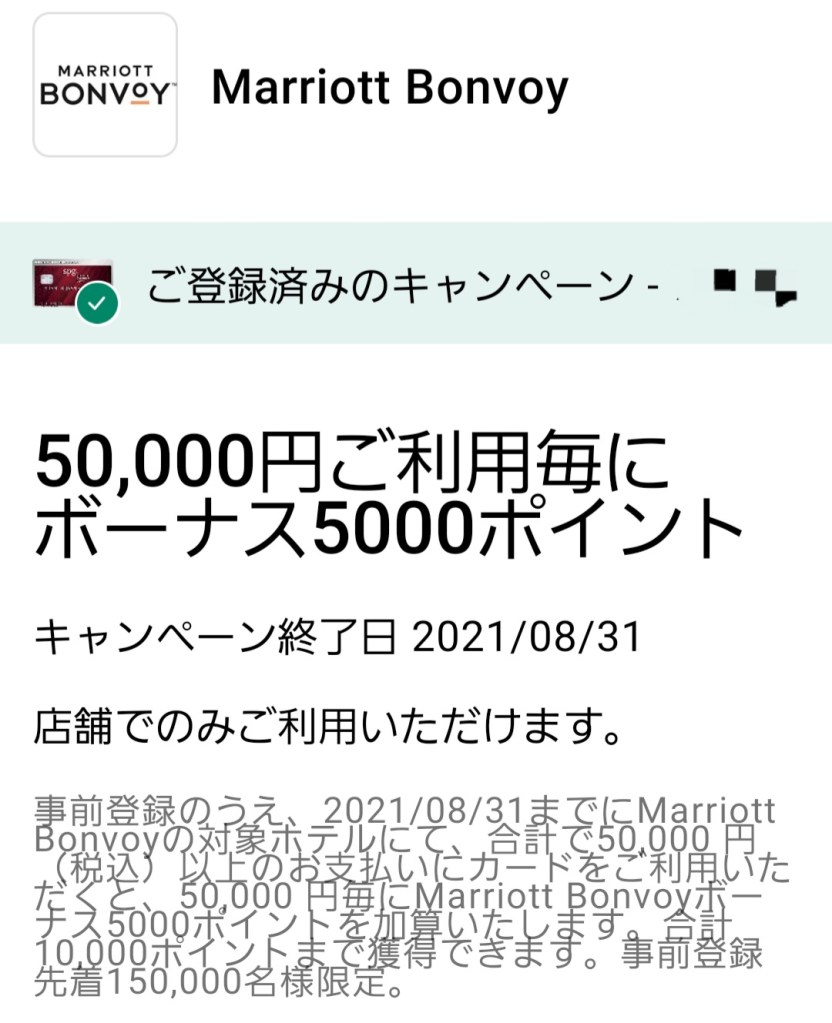その中で、8月31日までにspgアメックスを対象ホテルで利用すると、5万円ごとに5千ポイントを獲得でき、最大で1万ポイントまでゲットできるというキャンペーンがあります。