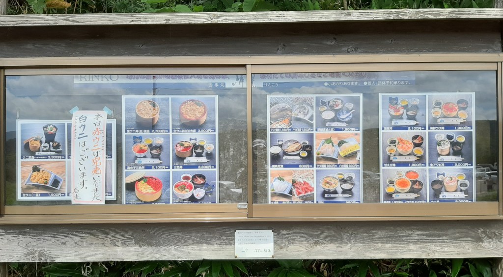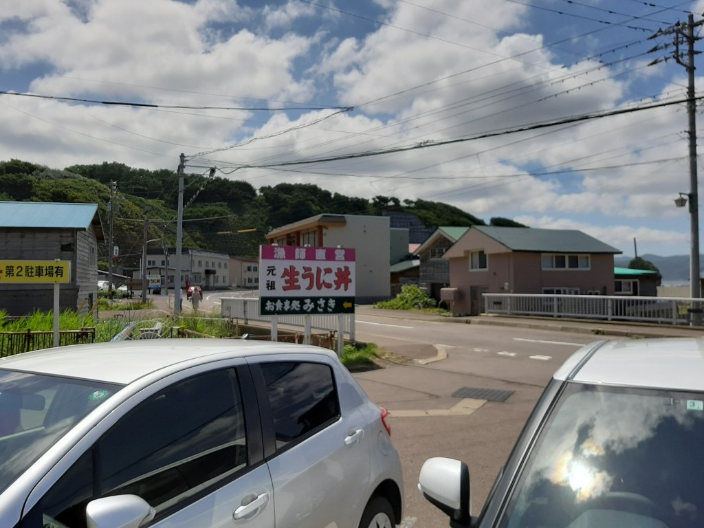 電柱の看板広告に様々なうに丼のお店が出ています。元祖生うに丼のお店「みさき」が目につき、WEBで調べてみるとなかなか良さげです。ナビとは違う方向でしたが、「みさき」の案内板を頼りに向かいました。
