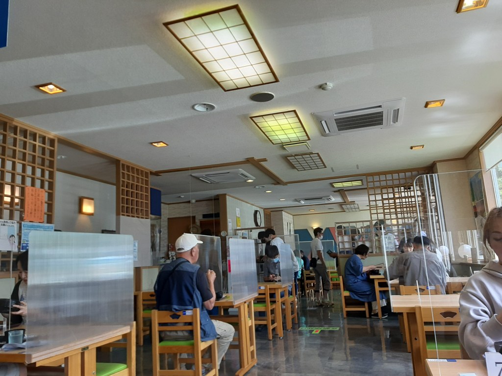 駐車場に戻ってから「カムイ番屋」というレストハウスに行き、積丹ブルーのソフトクリーム(400円)を頂きました。ミント味とのことでしたが、マイルドなミント味でした。青い海をバックに写真を撮りたかったのですが、少しだけ海が写りました。