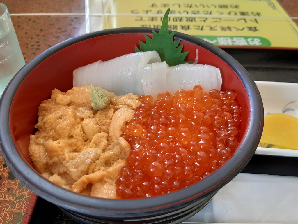生うにを口に入れると、少し甘みがあってとろけてくれます。イカも新鮮さがわかります。いくらは少ししょっぱい感じがしました。しかし、積丹半島で生うにを食べることができたので、大満足です。リタイア後は長期滞在していろんな店で生うに丼の食べ比べをしてみたいものです。