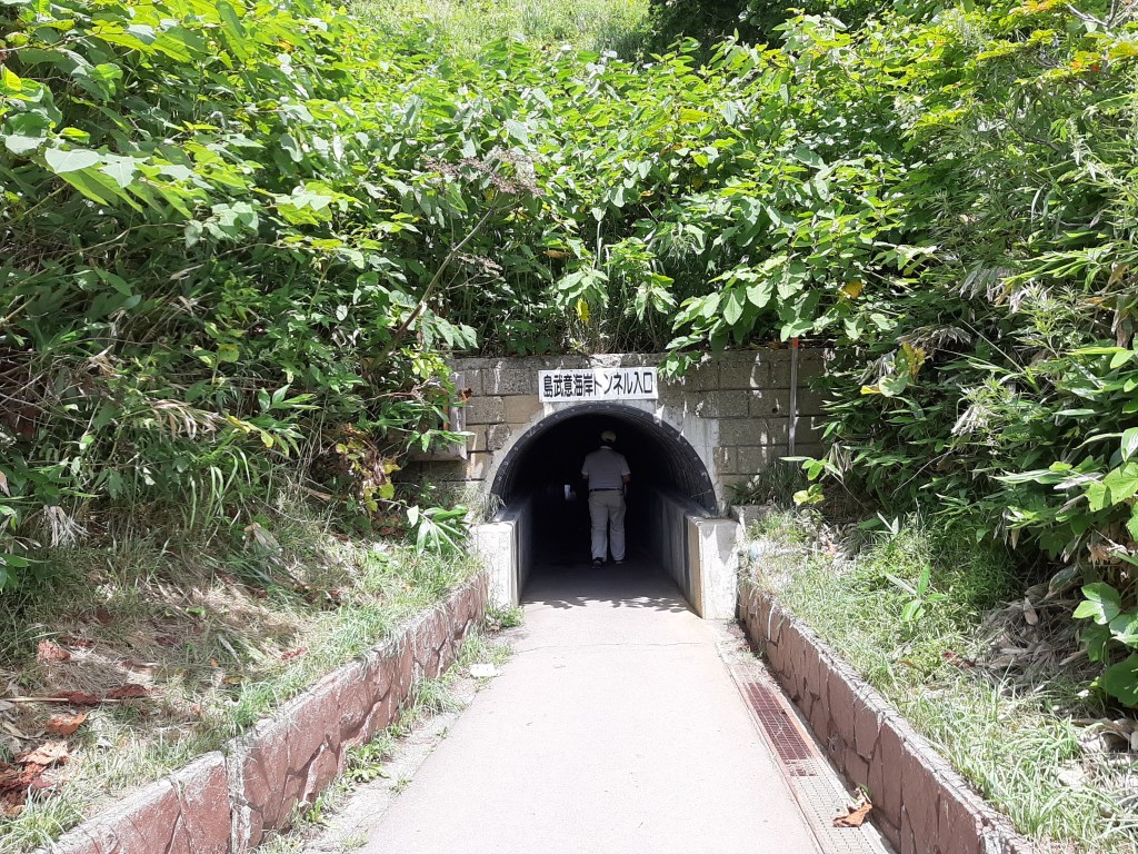 島武意海岸へはトンネルをくぐって行きます。ワクワクしてきますね。