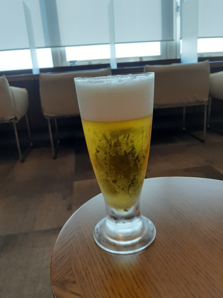 食事や飲料が置いているコーナーと座席との間を何往復かしていると、ビールサーバーがズラリと並んでいるのにようやく気がつきました。緊急事態宣言等でアルコール類の提供は禁止されていると思っていたのですが、さすがファーストクラスラウンジですね。