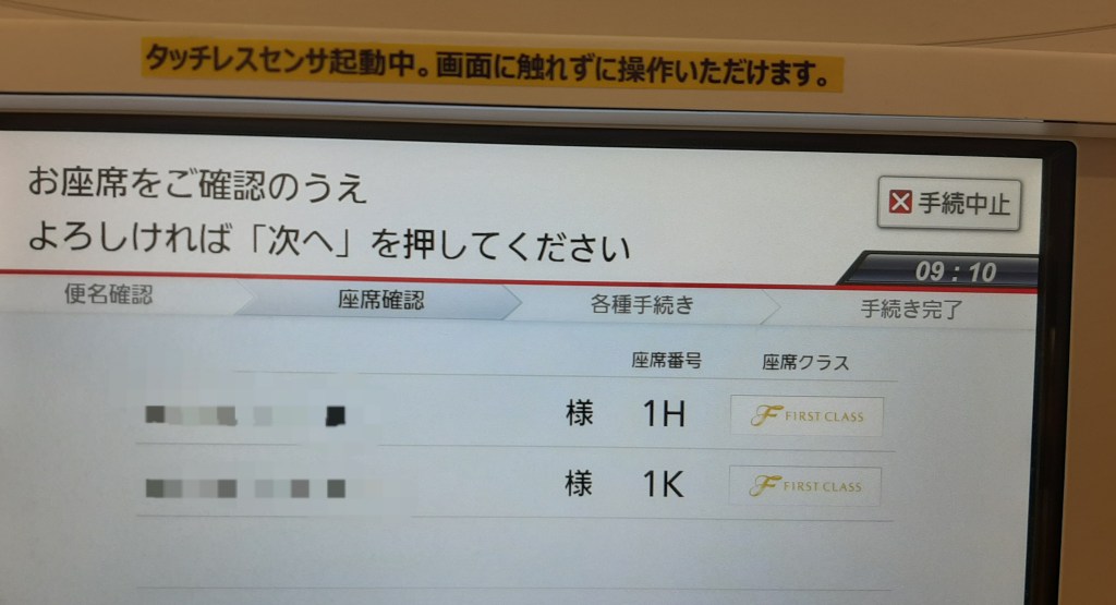 ラウンジである程度お腹を満たしてから搭乗口へ向かいます。第一優先で機内に乗り込みました。
