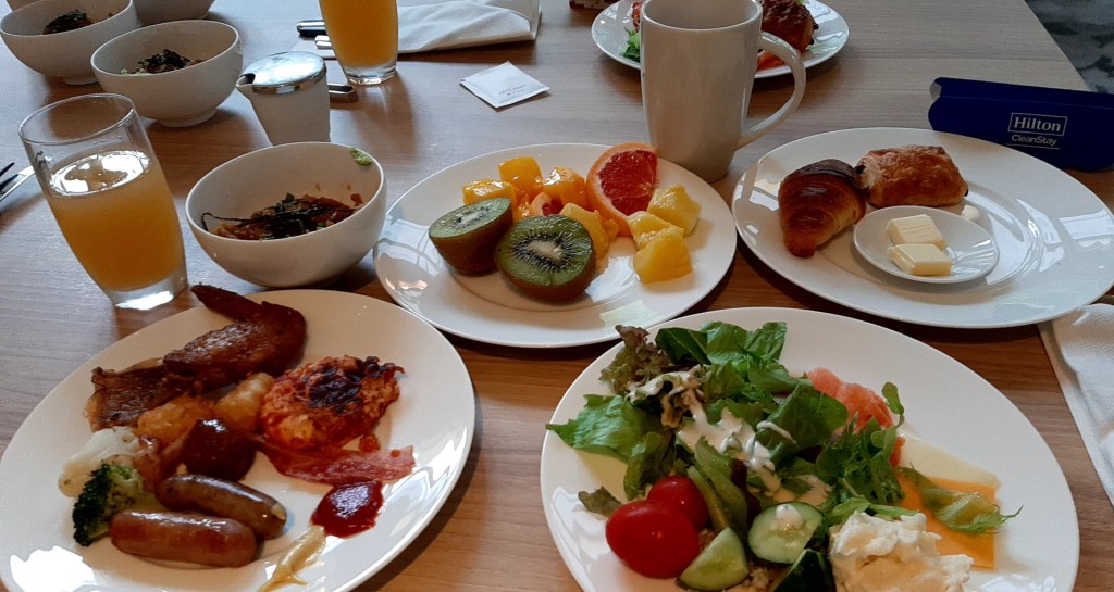 朝食はゆっくり時間をかけて頂きました。同じビュッフェの朝食でも、トラさんはマリオットアソシアの方がいいなと思いましたが、カウちゃんはヒルトンの方が好きなようです。