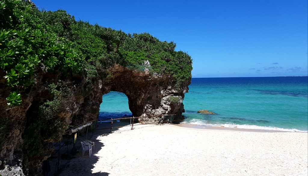 海に出ると狭いビーチですが、海の色が素晴らしく、宮古島ブルーと呼ばれるのでしょうか、美しい景色が広がっています。
