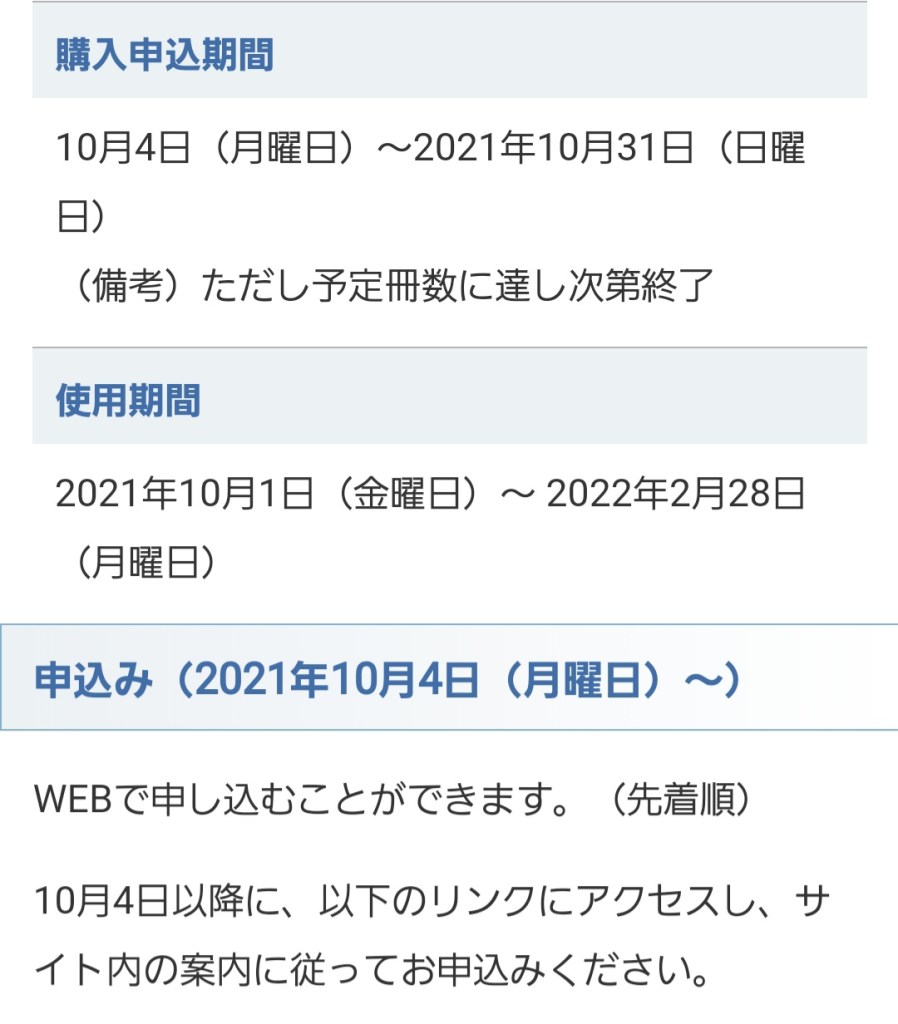 来年の2月28日までが使用期限なので、10月からの5ヶ月間に5万2千円分の予算です。トラさんちにとってはちょうど良いくらいです。