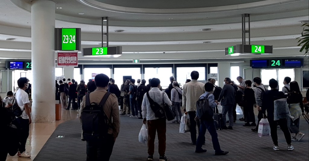 今日は最初から南ウイングを目指します。南ウイングの一般用保安検査場は列ができています。