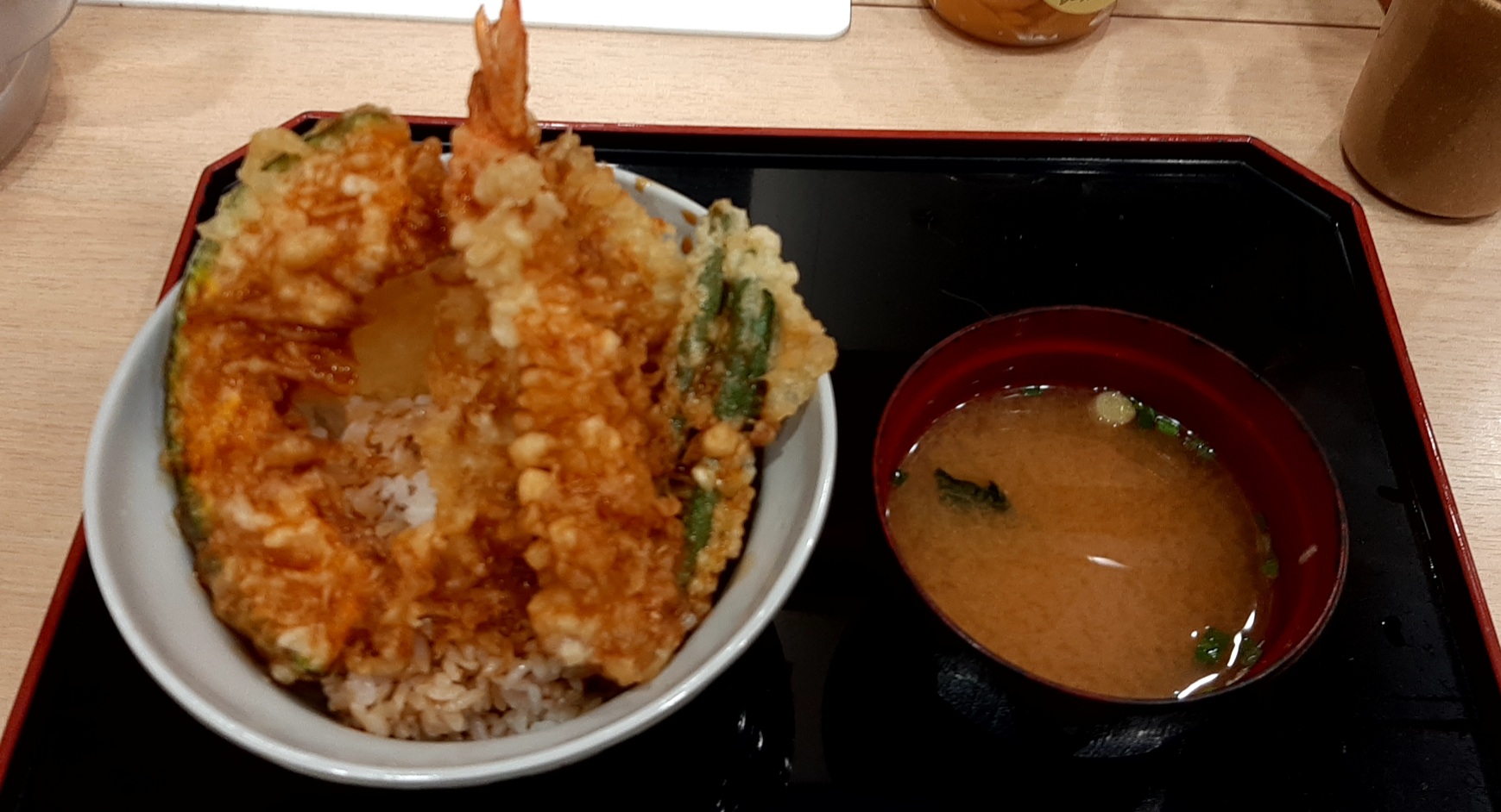 羽田空港に到着し、お昼ごはんは「天丼てんや」の天丼(500円)にしました。空港は何でも高いのですが、これで500円ならコスパ十分でしょう。