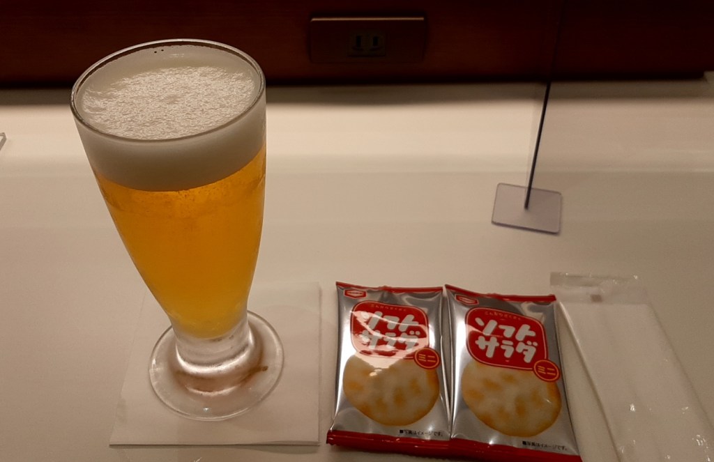 那覇空港にも定刻通りに着き、少しの時間でしたが、朝に入るのを断念したサクララウンジに行き、オリオン生ビールを頂きました。