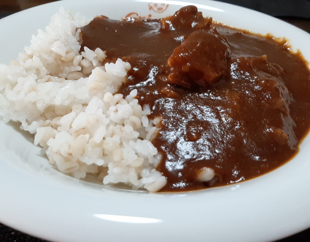 この肉の塊といい、ルーに溶け込んだお肉の甘味といい、セブンイレブンのゴロゴロ肉のビーフカレーに近い感じがします。