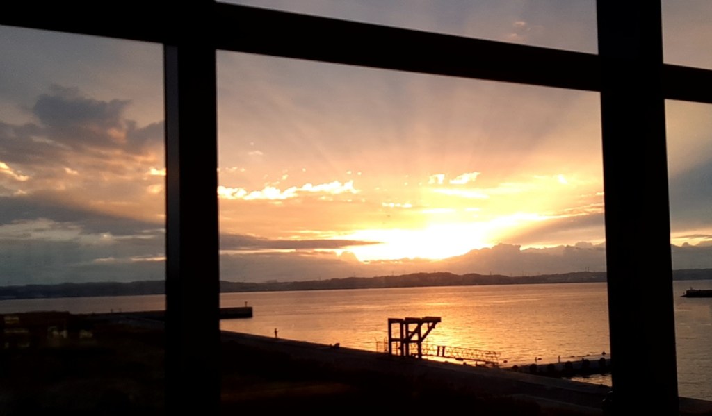 今朝は6時からホテル2階のレストラン「EVOLUTION」でビュッフェ形式の朝食です。ちょうど日の出が見れる時間帯です。