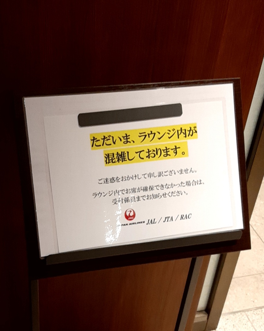 20分近くは待ったでしょうか。列はどんどん長くなります。ダイヤモンドプレミアラウンジに入る権利はあるが、サクララウンジに回る人にはミールボックスが配られていました。食事券を渡されている人もいましたが、ファーストクラスの搭乗客でしょうか。
