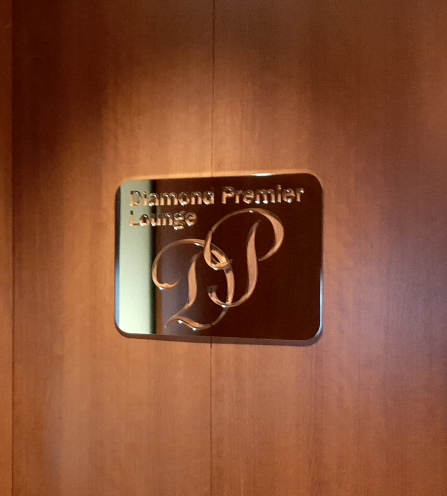 ラウンジのレセプションでダイヤモンドプレミアラウンジを案内されましたが、ラウンジ内が満席とのことなので入口の前で待つことになりました。