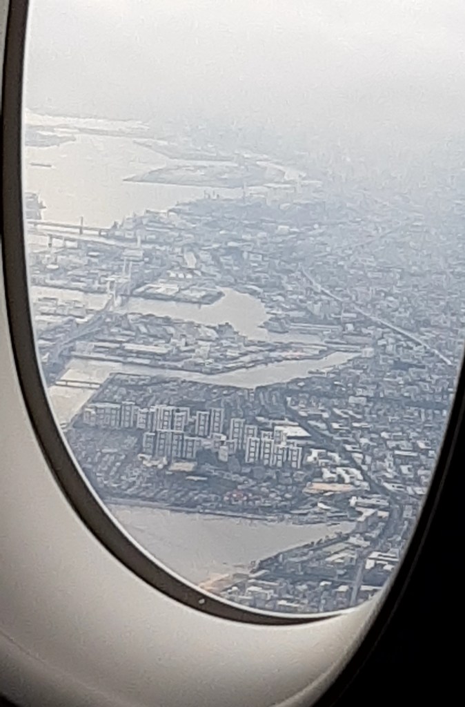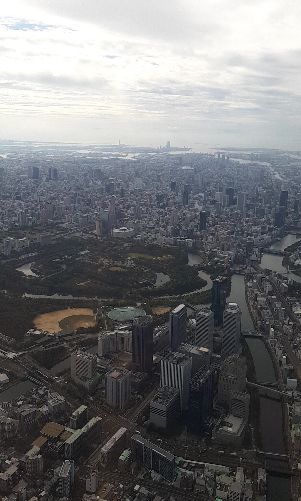 伊丹空港へアプローチする時、大阪の街の上を通るので滅茶苦茶エキサイティングです。世界遺産になった「百舌鳥・古市古墳群」(仁徳天皇陵)や大阪南港、大阪城、大阪駅、新大阪駅などが良く見えます。