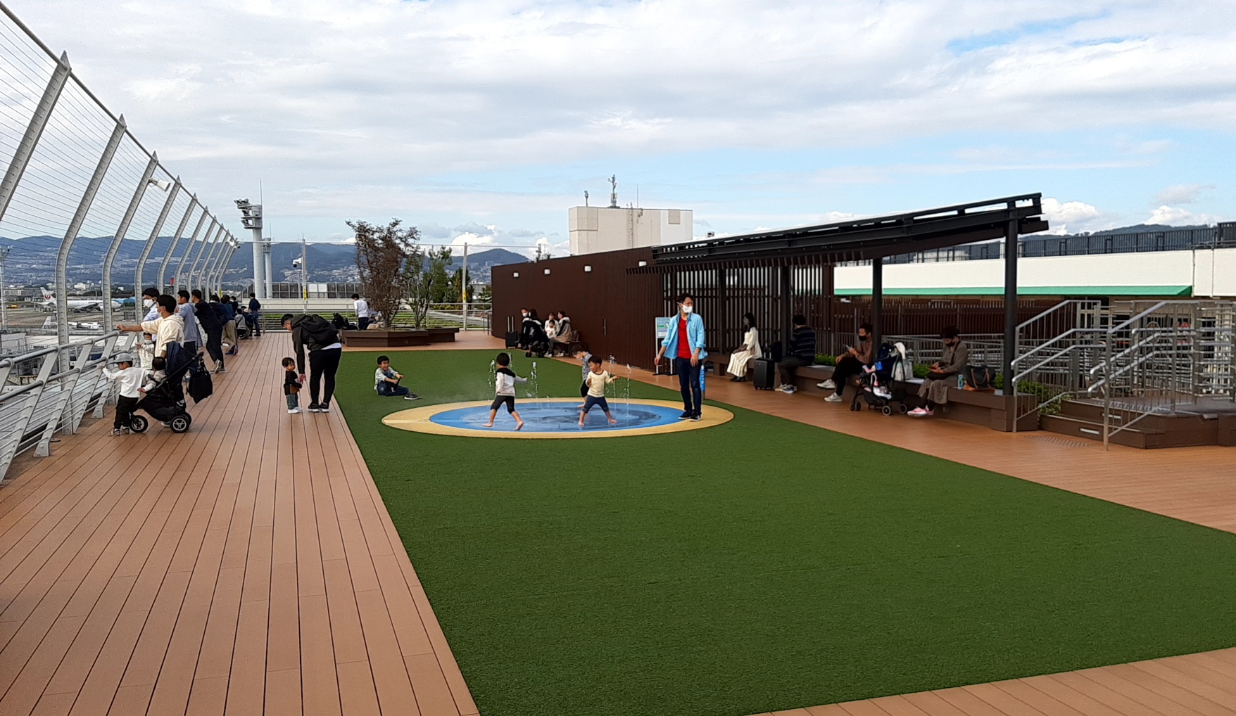 伊丹空港へ着陸する時も、空港の周りに公園も整備されているようです。結構見学者もいます。