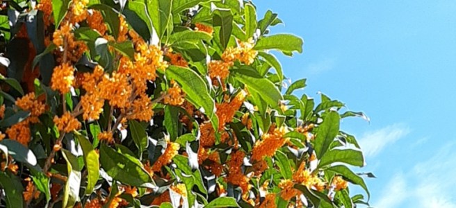 ここ2~3日、トラさんの住む街でキンモクセイの花の香りが街中に漂っています。10月初め頃にも花を咲かせ、香りも漂い始めましたが、1週間も経たずに終わってしまいました。