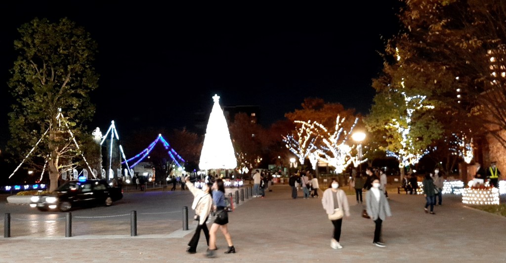 今日は所要で名古屋へ行ってきました。お昼頃着いて地上に出たら、白い巨大クリスマスツリーの前でクリスマスソングのオーケストラ生演奏をしていました。