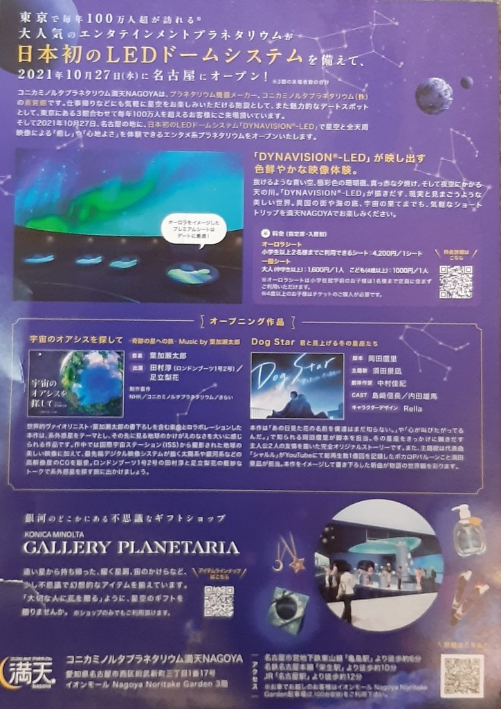 レジで並び疲れたので、あまりウロウロできませんでした。来週末にも名古屋へ来る予定があるので、その時には「コニカミノルタプラネタリウム満天」にも行きたいと思います。