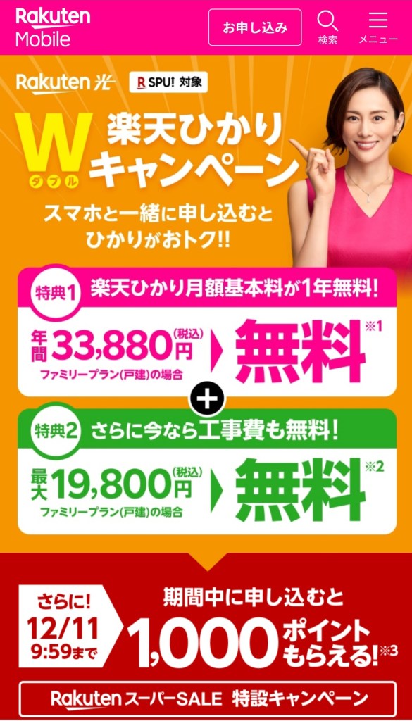微妙に高い気がします。楽天ひかりなら最初の1年無料で、2年目からは4,180円/月です。