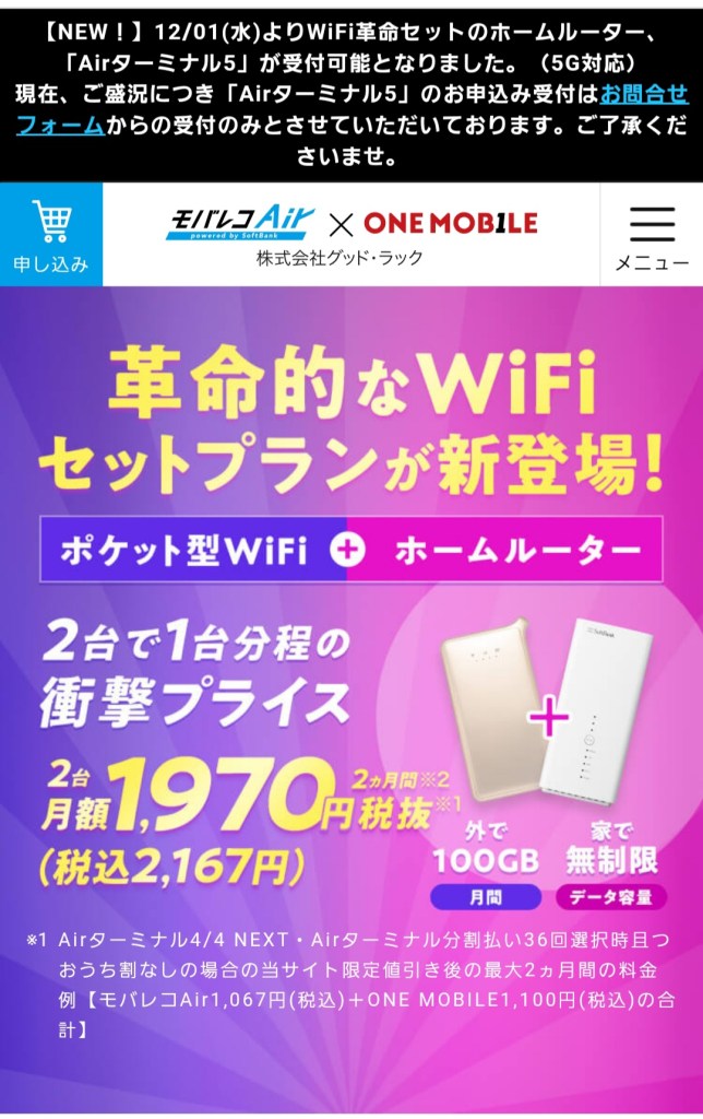 楽天ひかりがいいなぁと考えていると、WiFi革命というのにも目が行きました。