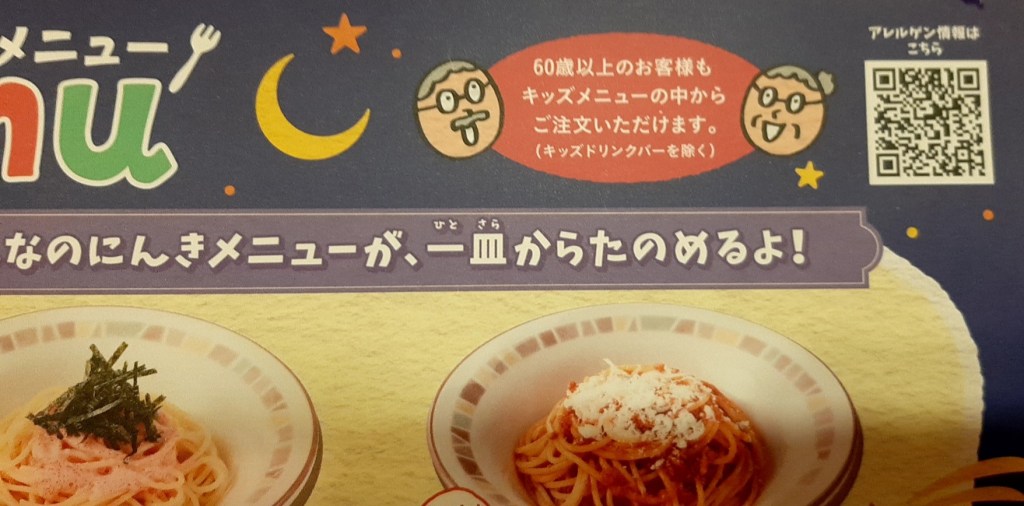 何と、60歳以上のシニアならキッズメニューの中から注文できるというものです。